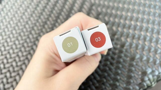 わたしはイベントで、明るいブラウンの「02 ゴールデンブラウン」もマルチに使いやすそうでいいなあ、涼やかな水色の「05 アイスペール」は夏の目元にかわいいなあなど、ものすごく悩んだ結果、「とにかくポーチを軽くする」を目指して、「01 オリーブカーキ」と「03 レッドクレイ」の2色を買いました。