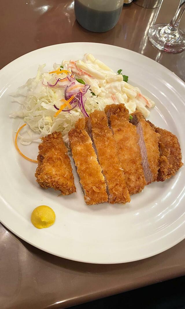 「とんかつ定食(ごはん付き)(ほとんど食べ切りました。痩せているのに驚きの大食漢)」、日本班は「チーズハンバーグ」「メンチカツカレー」「カレーライス」。