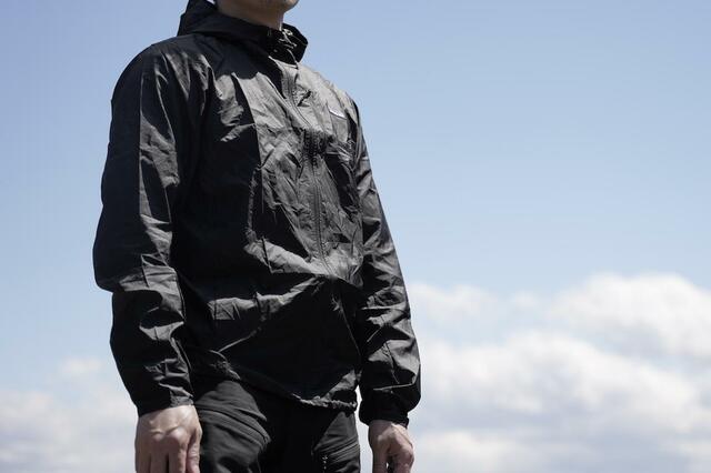 ちなみに撥水素材のアイテムだと硬めの生地であることも多いですが、このジャケットはとても柔らかな素材で作られており着心地も良く快適。