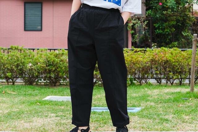 ウエストと裾はゴム仕様になっていて、ちょうどいい場所でサッと留められます。