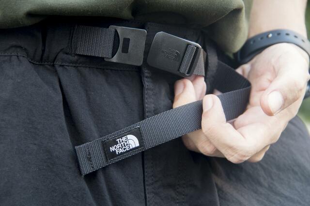 ウエストは着脱が簡単なウェビングベルト仕様。