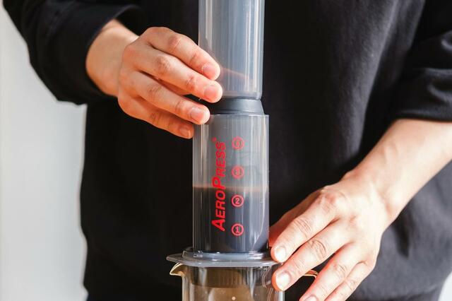 レシピのベースとなる抽出器具は、空気圧を利用してコーヒーを抽出する「エアロプレス」。