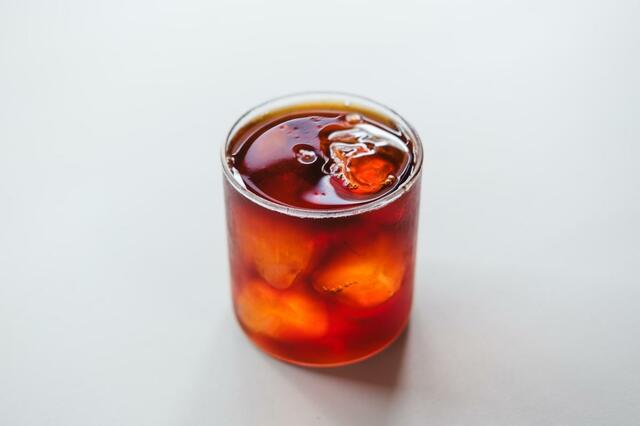 別に用意していた、たっぷりの氷が入ったグラスに注げば、華やかで甘味もジュワッと広がるアイスコーヒーの完成です!