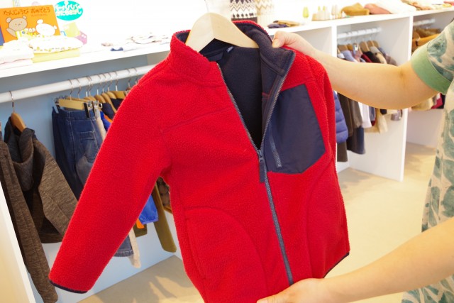 ボーイズには防風フィルムが寒風を通しにくく暖かいジャケットが登場(「防風フリースジャケット」1,990円)。色も元気いっぱいなビタミンカラーで、寒さを吹き飛ばしそうですね。
