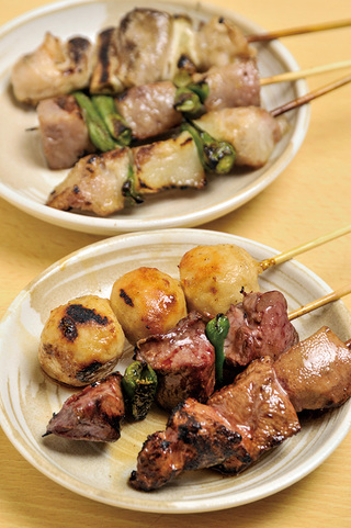 鳥とモツの串焼き専門店。その日仕入れた新鮮な食材を、紀州備長炭で香ばしく焼き上げる。創業当時から継ぎ足しながら使用している秘伝のタレと、岩塩と湖塩をブレンドした塩が味の決め手となっている。絶妙な焼き加減で出され、ボリュームもあると好評だ。