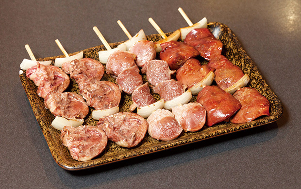 串焼き各種 1本180円 左から、海塩で味わうハツ、歯応えがいい砂肝、特製ダレ使用のレバー。