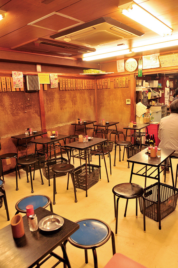 浅草橋の下町風情が残る路地にある大衆的な店で、店の入口を入るとすぐに焼き場があり、炭火の煙とタレの香りに包まれる。串焼きはいずれも1本100円で、希少部位も含め全17種。モツの小皿料理も好評だ。立ち飲みスタイルのカウンターの奥に、テーブル席がある。