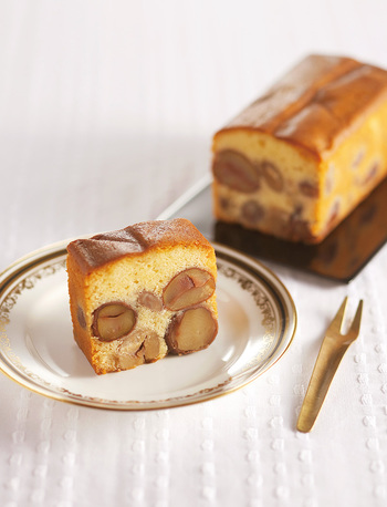 パウンドケーキ生地の風味豊かなバターは、世界中の高級レストランで使われているフランスの高品質バター。それに加え、和三盆糖の甘みが世界各地から厳選された栗の美味しさを引立てます。断面に栗がゴロゴロ入っている様は、まさに栗ケーキの極み!