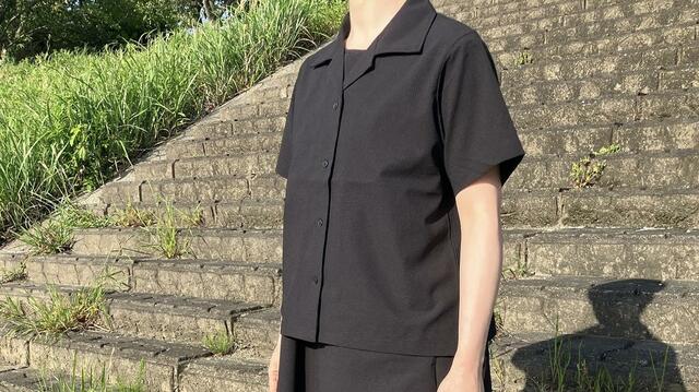 この素材でさまざまなアイテムがありますが、ひとつ目のおすすめは、着まわしで便利に使える「半袖シャツ」。