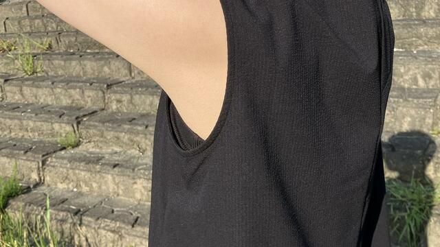 下にTシャツなど重ねやすいようサイドの空きが大きめなので、インナーはカップ付きキャミやタンクトップがおすすめ。