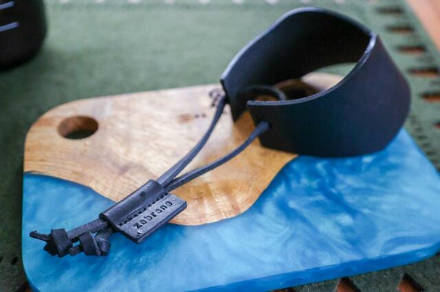 牛革のスリーブが付いており、これが持ち運ぶときやコーヒーをコップに注ぐ際に便利。