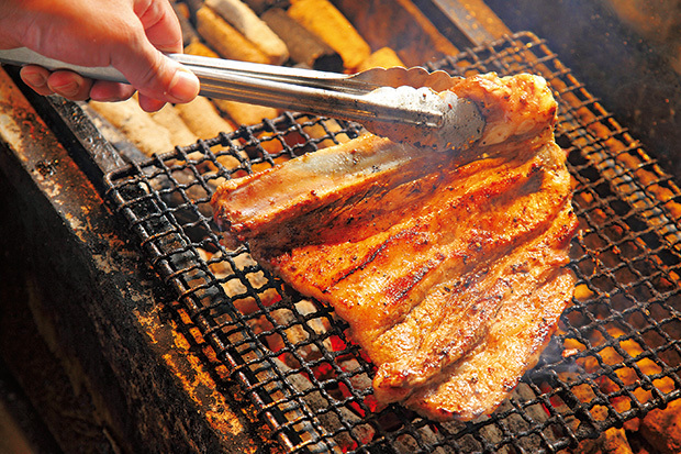 特大スペアリブを秘伝のタレに漬け込んで備長炭でじっくり焼き上げた「豚かぶり焼き」が人気。骨にかぶりついて周りの肉まで味わうのが通の楽しみ方だ。ジューシーかつやわらかく、噛むほどに肉の旨味を感じられる。一度食べたらヤミツキ間違いなし!