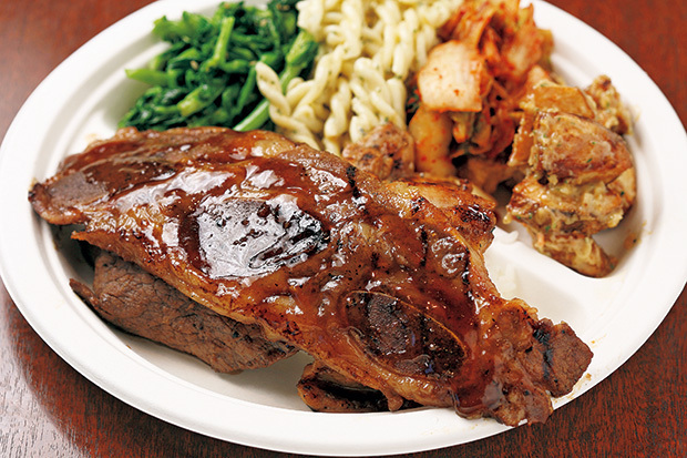 ハワイで生まれたコリアンバーベキューのファストフードで、日本ではここ栄本店とパルコ店の2店舗のみ。ビーフやポーク、チキンがメインのワンプレートが一番人気で、サイズによってライスと好みのデリを4つ選べるセットになっている。注文後に焼き上げるので、できたて熱々!