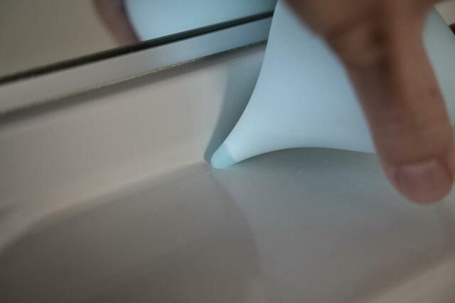 先っぽがとがっているので、隅に残った水を吸い取るのも簡単。