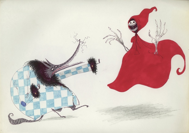 無題(墓ずきんちゃん) 1981年 27.9 x 39.4cm ペン・インク・マーカー・色鉛筆・紙©2014 Tim Burton