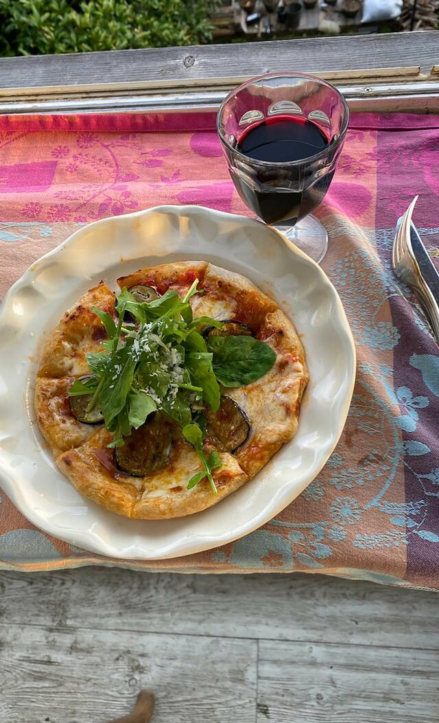 ナスを加えたpizza マルゲリータ、赤ワインをおなかに入れ、再びBrewstars Yacht Clubへ。