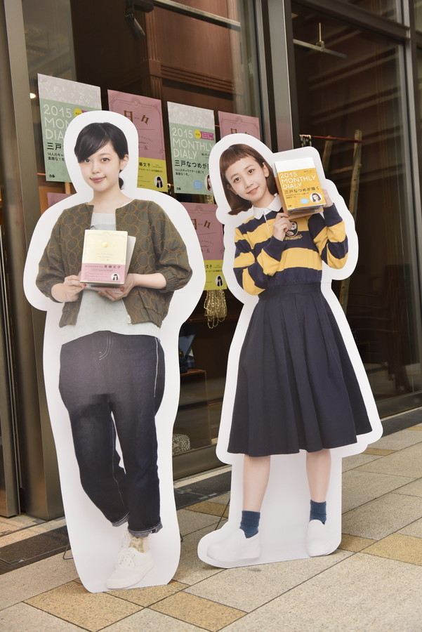 撮影:川野結李歌 完成して発売された手帳を前に(左:三戸なつめ/右:青柳文子)拡大画像表示