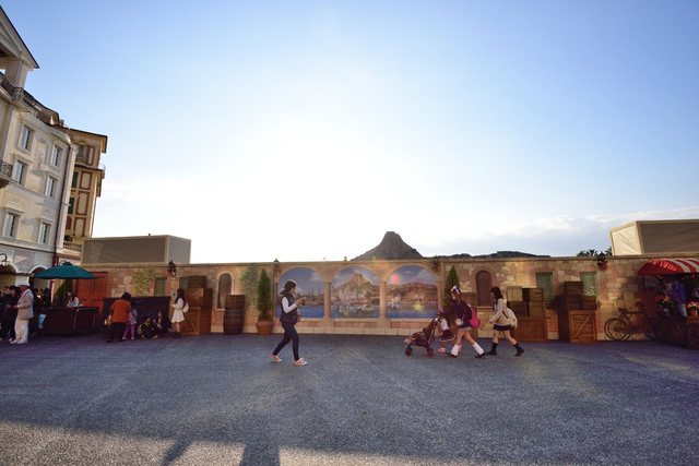 囲いの範囲は、リドアイルへと向かうスロープの下(「ヴィラ・ドナルド・ホームショップ」前)あたりから、ピアッツァ・トポリーノ(ミッキー広場)、「カフェ・ポルトフィーノ」前まで一帯が、全て覆われています。