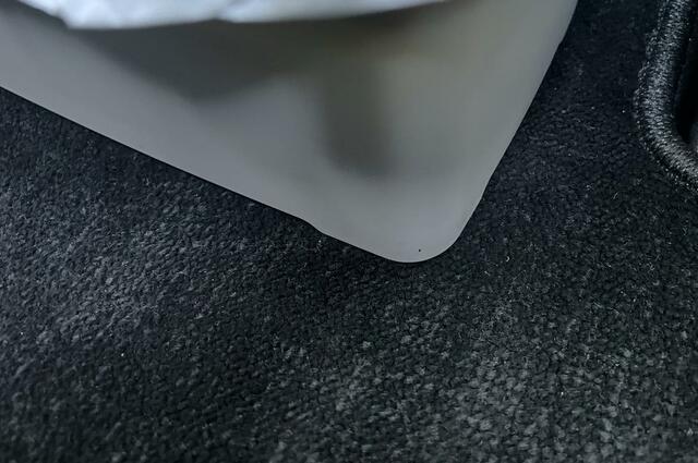 後部座席の足元に置いてみましたが、大容量のわりに背は低いので、思ったよりも圧迫感がなく快適です。
