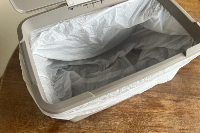 小型のごみ箱であればすぐにゴミが溢れてしまいますが、これなら週に1回ほどゴミ袋を替えればOKなので、ズボラ民にとってはありがたいんですよね〜。
