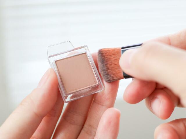 本体は少し小さいけれど、チークブラシでアイシャドウをとるとうまく色味がのりますよ。