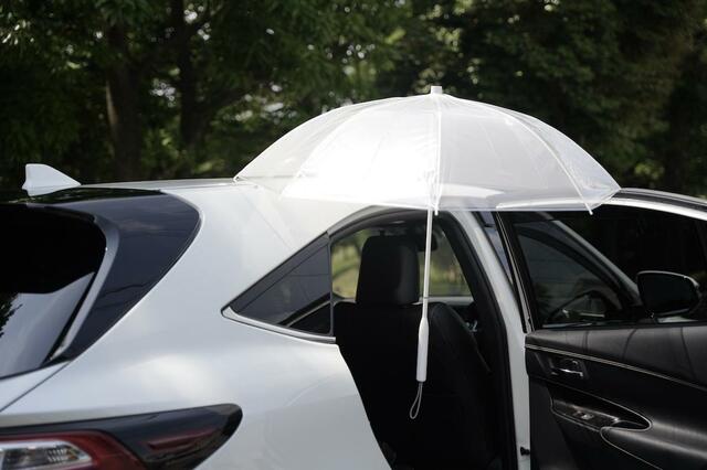 開いたままの傘が車にビタっと