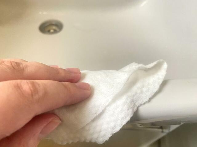 たとえば、洗面台まわりの水はねをサッとひと拭き。