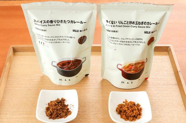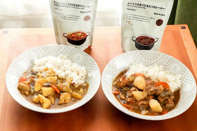 見つけたのは、無印良品の「スパイスの香りひきたつカレールー」と「辛くないりんごと炒め玉ねぎのカレールー」です。
