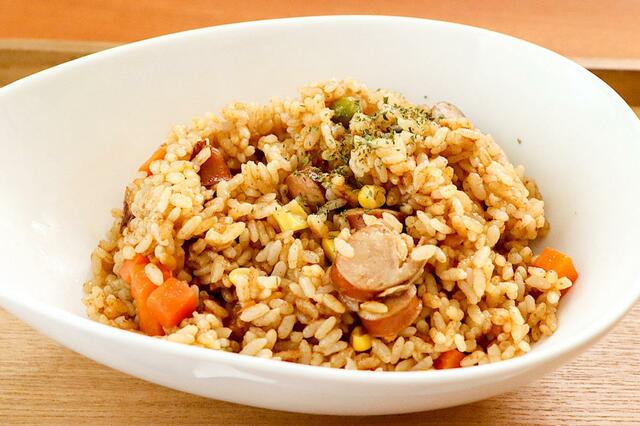 ほったらかしでカレーピラフのできあがり。