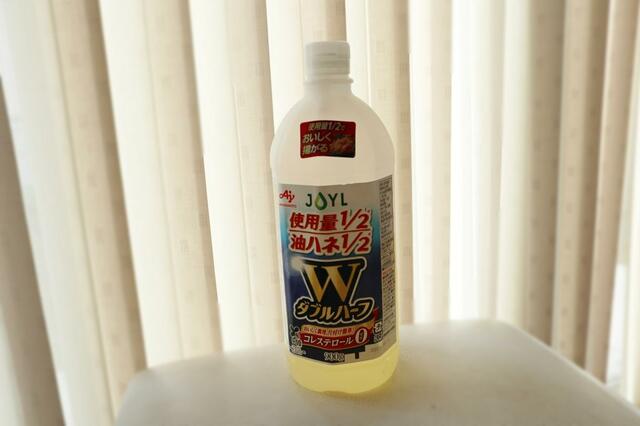 いつものスーパーで見かける、「使用量も油ハネも1/2になる」とパッケージに書かれたこの油が気になっていました。