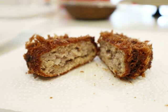 揚げあがったメンチカツはこの通り、見た目には変わらないですね。