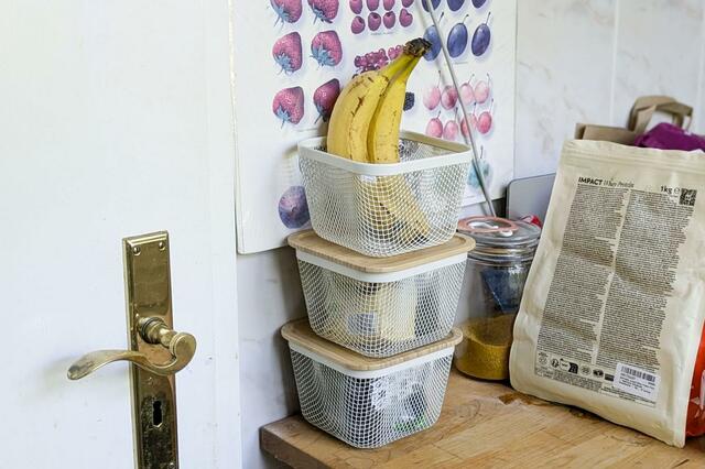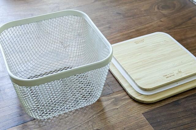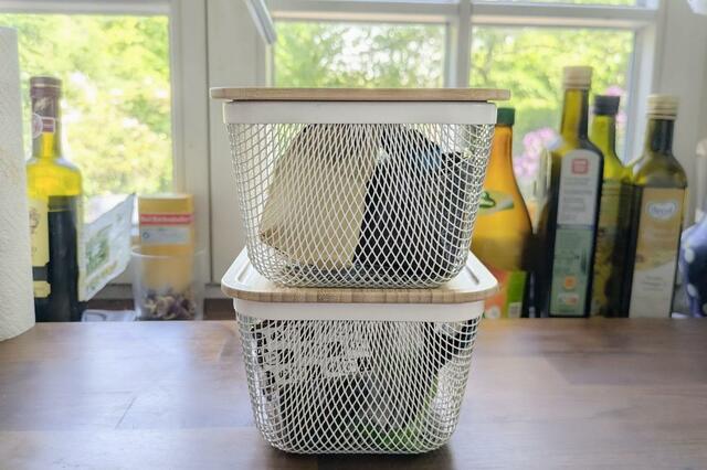 このかご、「IKEA 365+ ふた(竹)」と合わせて使うことで、キッチン収納をスッキリさせてくれるんです。