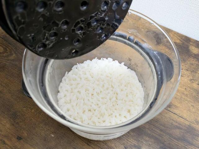 最後は、食べたいときにレンジで500W10分、蒸らして10分。お米の食感が楽しい、硬めごはんのできあがり~!