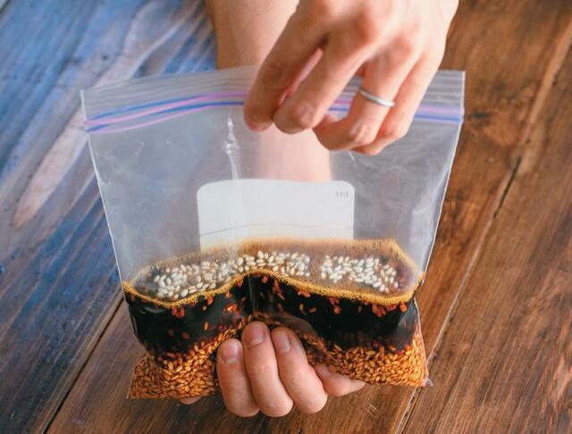 ふたつめは、保存袋の口を完全に締め切らないことです。発酵にはある程度の酸素が必要なので、温度が低くなりすぎないよう、保存袋の口は指1本分だけ開けておきます。