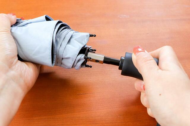 手元のボタンを押すだけで開閉できるので、取り出してすぐに使えます。