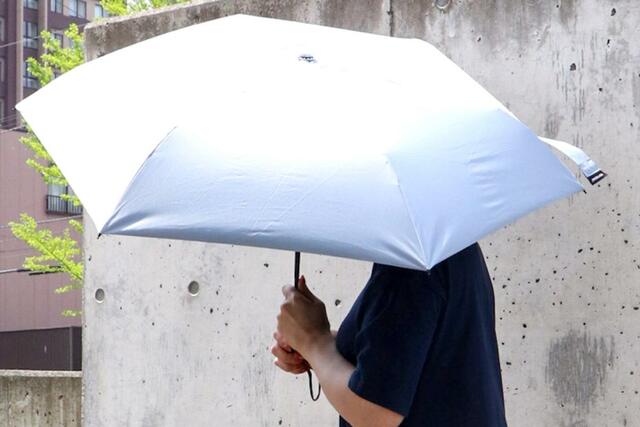 日傘選びで悩んでいるときに「傘の外側が明るいカラーの方が熱くなりにくい」という話を聞いていたので、今回はライトブルーをゲットしてみました。