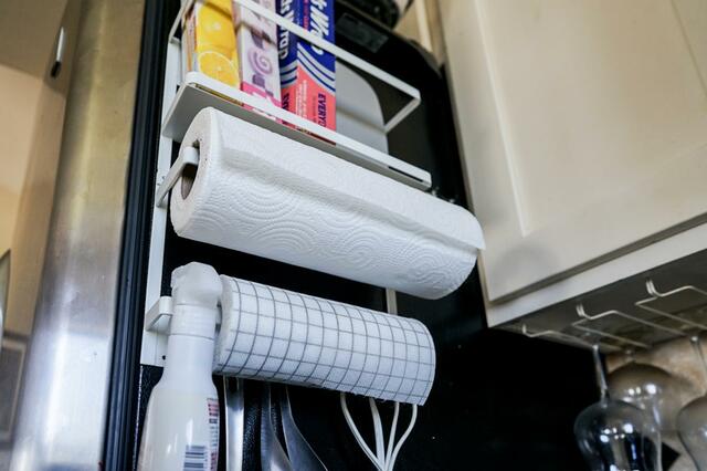 それにより、キッチンペーパーだけでなく、タオルやトリガータイプのスプレーボトルをかけることも可能。