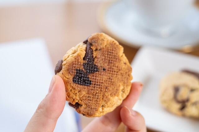 生地の部分は貫通することなく綺麗に焼けたんですが、チョコレートが接触していた部分は解けて網目を貫通して鉄板に焦げついてしまいました。