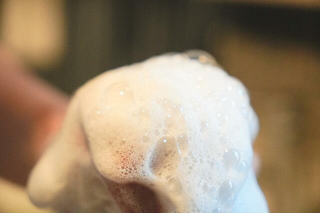 普段は泡立て洗顔。古い角質を柔らかくほぐし、汚れを吸着してくれる洗顔料で、テクスチャはなめらかな感じ。
