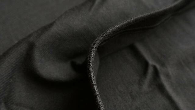 生地を作る前段階、糸の状態で染色を行うことで、深みのある美しい黒を実現しています。この特別な製法によって生まれた黒は、長く着ても色あせにくいのだそう。