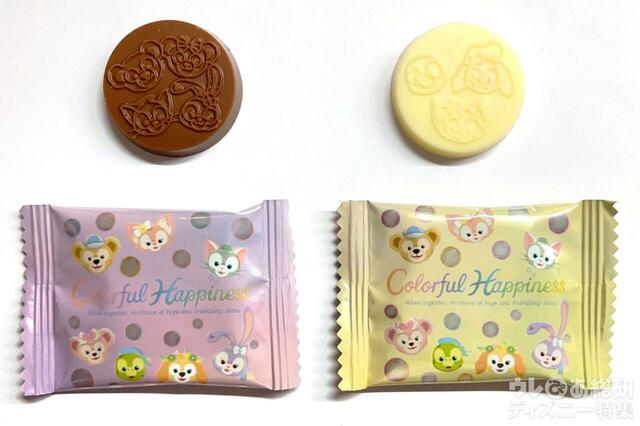 ちゃんと外箱に、菓子のデザインごとの個数は均等でないと明記されていますが、本当に1袋目にダッフィーいなくて笑いました。