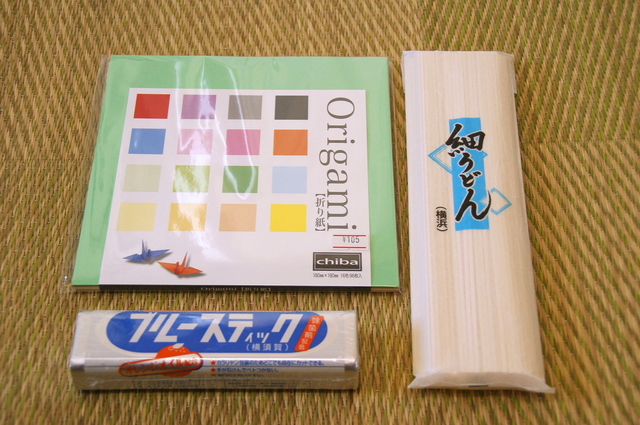 折り紙(千葉刑務所)、新発売のスティック洗剤(横須賀)、うどん(横浜)、どれも100円前後 拡大画像表示