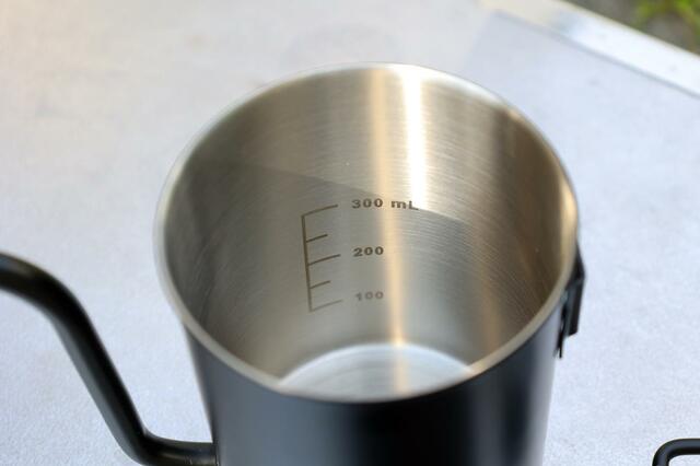このアイテムの内側には湯量を計れる300mlまでのメモリが付いているため、計量カップを用意する手間が省けます。
