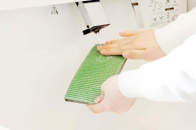 洗剤を使わず、スポンジを水で濡らすだけでOKなんです。