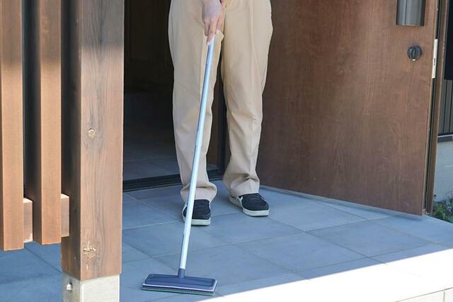 長さがしっかりあるので腰を曲げなくていいのは◎。玄関や外壁を快適に掃除できますよ。