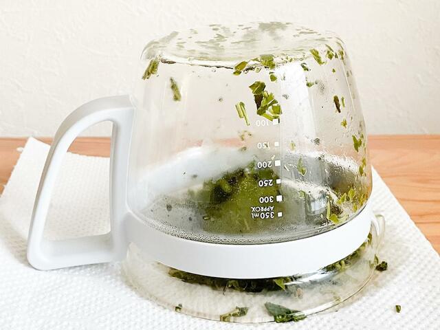 本体の底を軽く叩くと、ストンッと茶葉が落ちてきます。普段は直接ゴミ箱に捨てているので、スムーズに落ちてくれて煩わしさがありません。