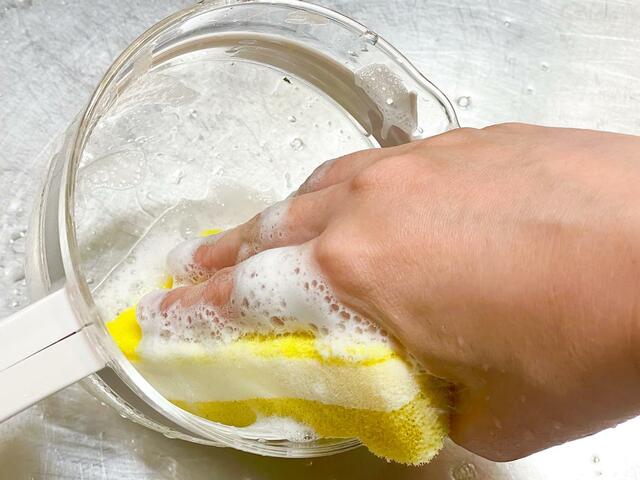 あとは、ササッとスポンジで洗うだけ。口が広くて、底まで簡単に手が届きます。