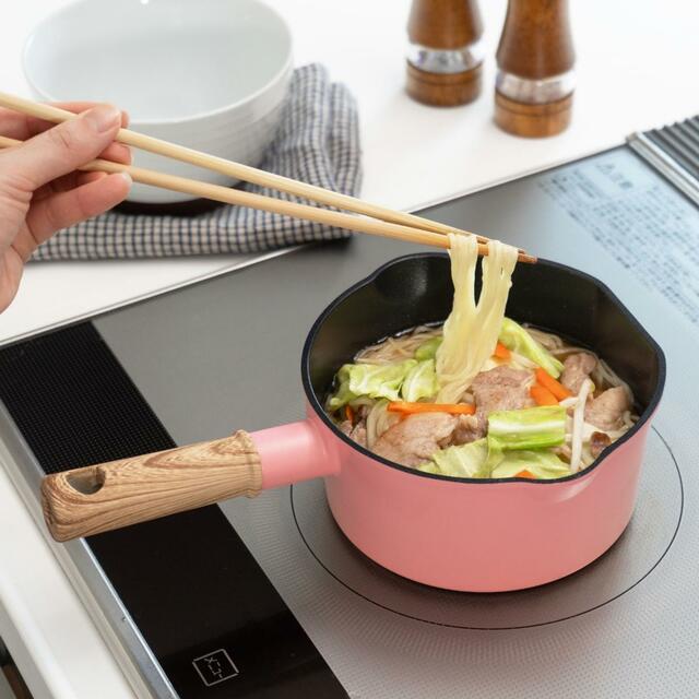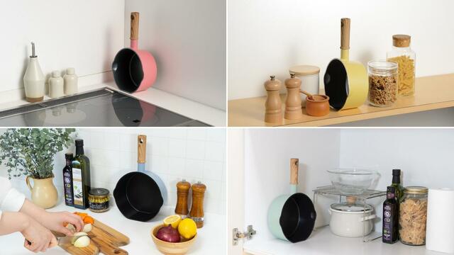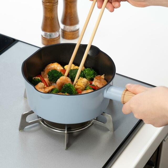 用途が広い片手鍋を、さっと手に取りやすい場所へ置いておけるのは大きなメリット!