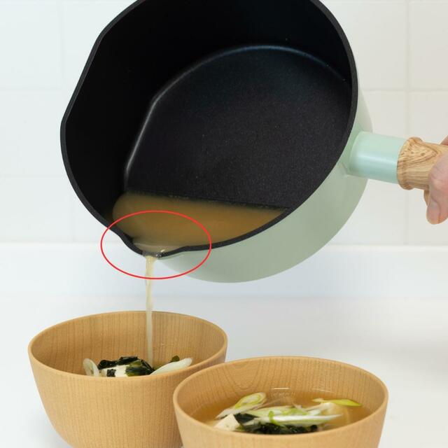 両端には注ぎ口がついているので、汁ものを注ぐときにこぼしにくいですよ。