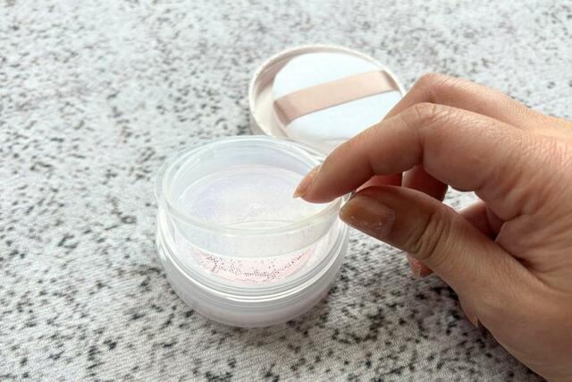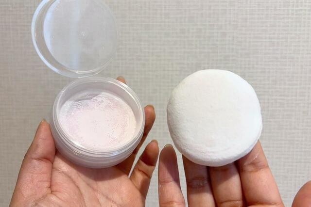 ぱっと見は真っ白なパウダー。軽い付け心地で、スベスベの心地いいお肌に仕上げてくれるのが◎。